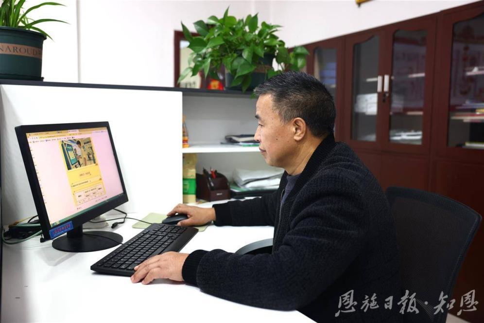 10月28日,巴东县金果坪乡党群服务中心,易盛荣正在编辑金果人社公众号。(湖北日报全媒记者 蔡俊 摄)