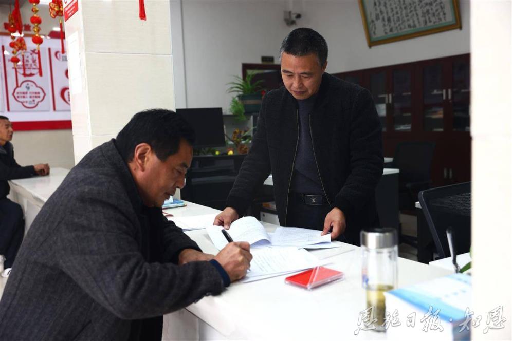 10月28日,巴东县金果坪乡党群服务中心,易盛荣指导村民填表。(湖北日报全媒记者 蔡俊 摄)